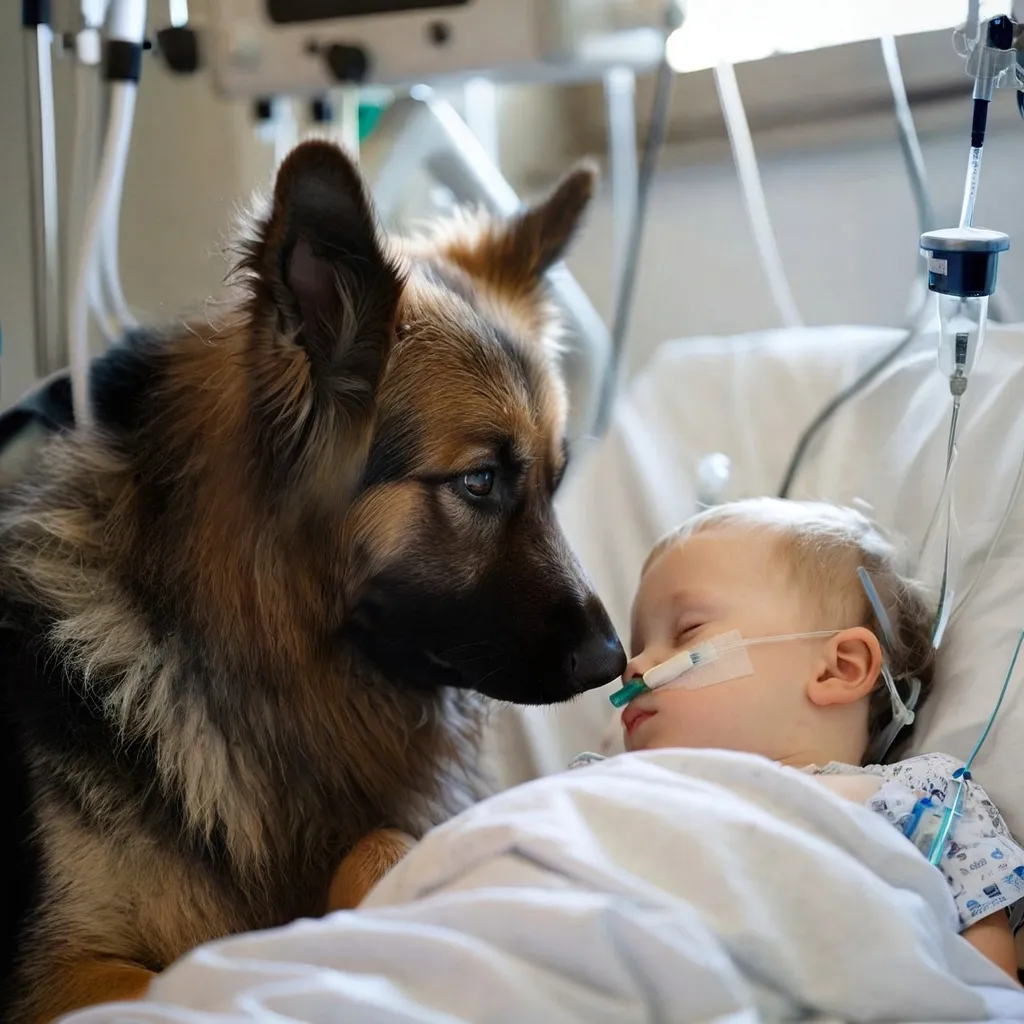 Following, stepping silently, a German Shepherd entered the room. In that same instant, everyone present turned their heads. The nurses, who had been quietly and efficiently doing their work, froze mid-step.