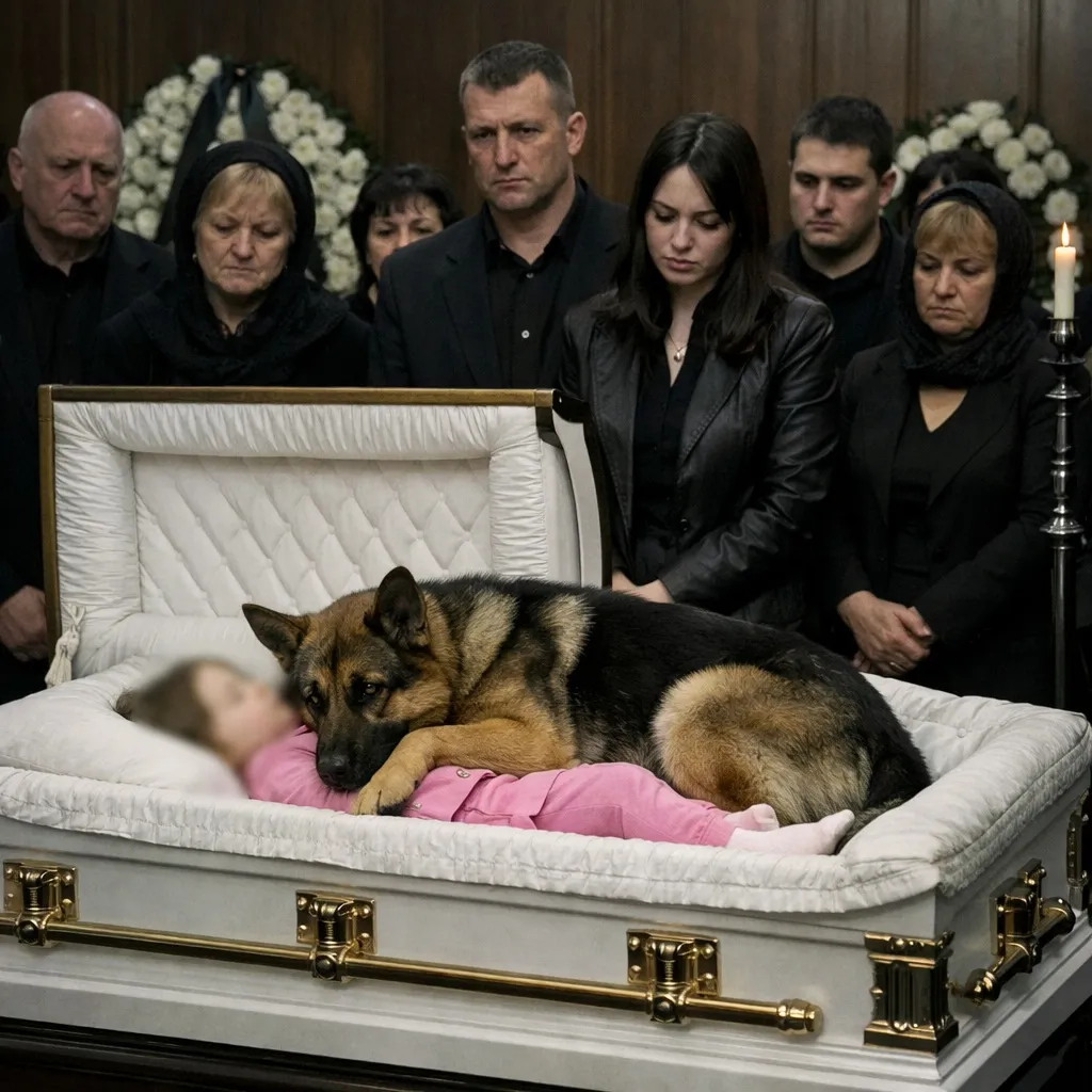 Служебный пес по кличке Буран с пугающей целеустремленностью и решимостью рвался к гробу, вызывая испуганные вздохи среди присутствующих. Одним мощным, плавным прыжком овчарка взлетела вверх и встала прямо на крышку маленького белого гроба. Все тело животного била крупная дрожь, но в его позе читалась абсолютная непреклонность.