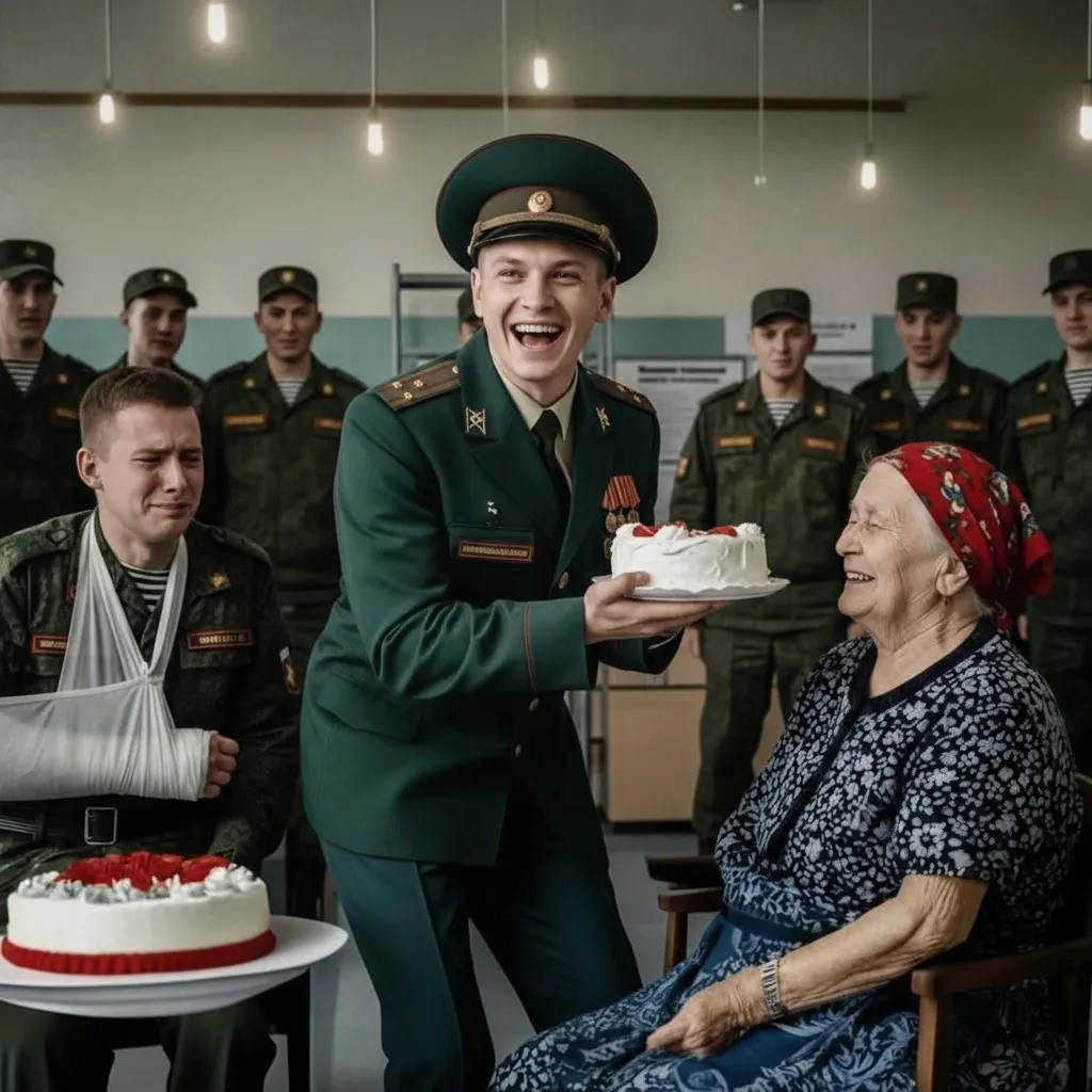 Будний день, зал для свиданий воинской части должен был быть наполнен радостными встречами и смехом множества семей. Однако в самом центре царила леденящая тишина, поглощавшая, казалось, все остальные звуки. Пожилая женщина лет семидесяти в простой деревенской одежде сидела на холодном полу, ее лицо и волосы были перепачканы сливочным кремом. У ее ног в виде бесформенной массы лежал раздавленный праздничный торт. Над ней, словно король, устроивший все это представление, стоял молодой и надменный старший лейтенант.