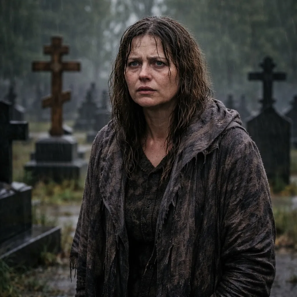 “Stop! You can’t bury him!” All heads turned toward the chapel doors. A woman with frantic eyes, soaked to the bone, burst through the entrance. Rainwater dripped from her tattered coat onto the polished marble. Her graying hair hung in matted clumps around a face lined by years of hardship.