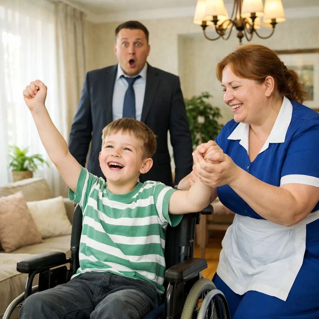 Вона повільно випрямилася, акуратно поклала руки хлопчика на підлокітники візка, а сама відступила на крок назад. Пан Михайло зробив кілька важких кроків уперед, його голос прозвучав глухо і суворо: «Що тут відбувається?»…