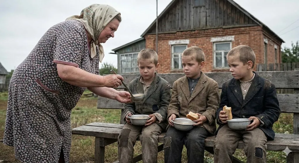 Zinaida Petrovna watched them eat and felt a lump in her chest, not understanding where it came from. Maybe from memories of her own son. Maybe from the fatigue of so many years. Maybe from the bitter thought that no one should have to see three children eat as if it were their last chance.